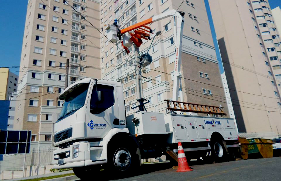 Construção e manutenção de redes de distribuição de energia até 34,5 kV urbana ou rural, aérea ou subterrânea, em vias públicas ou particulares.